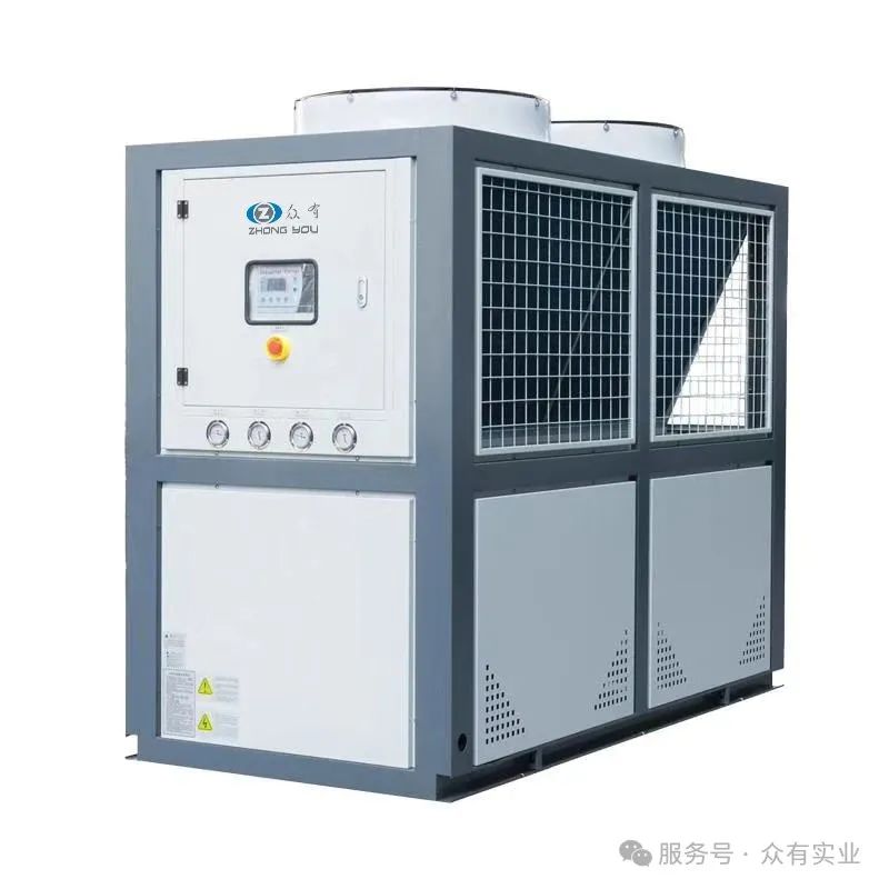 風冷式冷水機:冷水機類型的一種,將常溫的水通過冷水機的壓縮機制冷到一定的溫度以強化冷卻模具或機器,作為單機使用,散熱裝置為內置之風扇,主要有三個相互聯系的系統:制冷劑循環系統、水循環系統、電器自控系統。